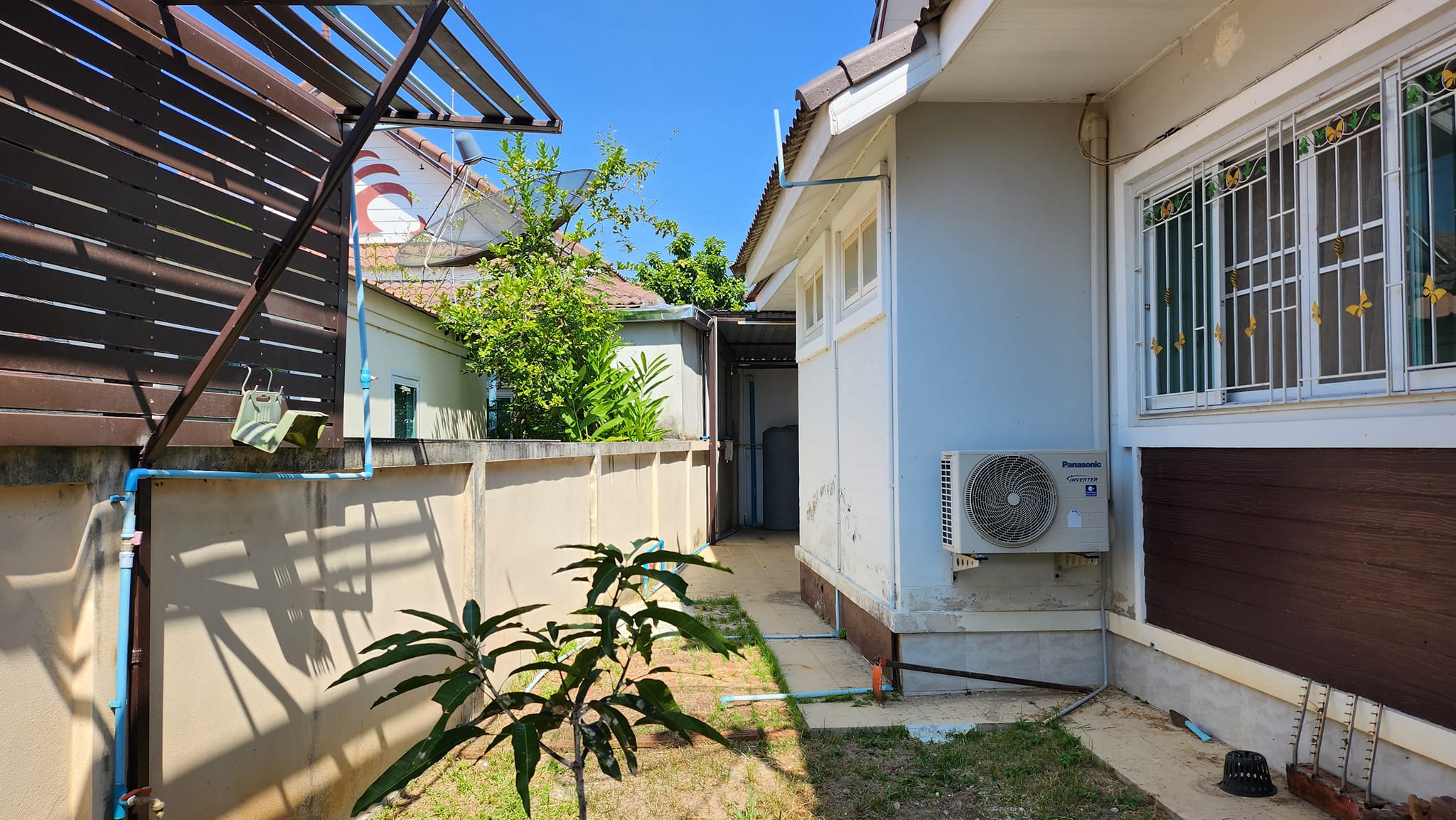 ที่จอดรถสามารถจอดได้ถึง 3 คัน พื้นที่ใช้สอยรอบบ้านเหลือเยอะ