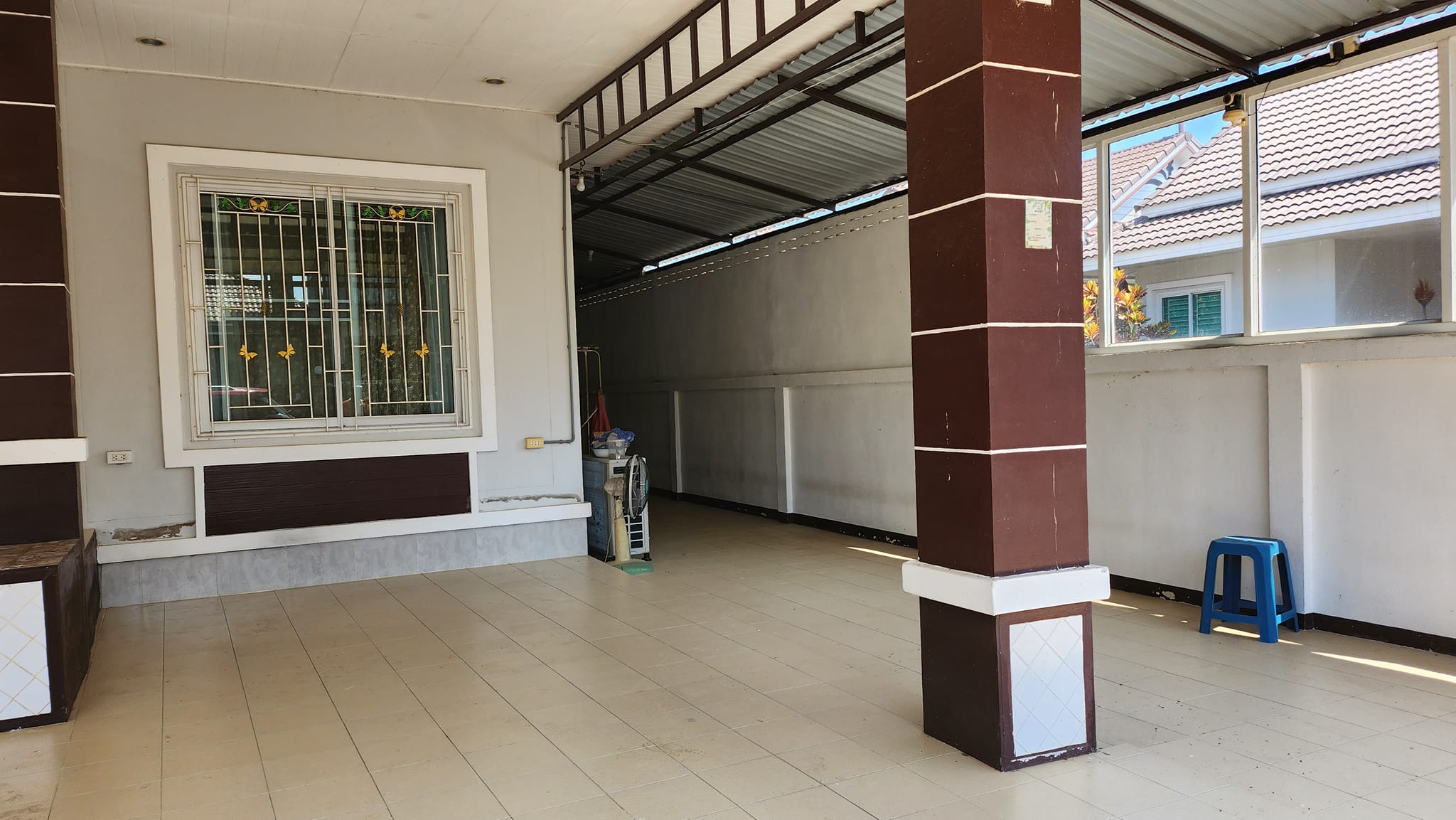 ที่จอดรถสามารถจอดได้ถึง 3 คัน พื้นที่ใช้สอยรอบบ้านเหลือเยอะ